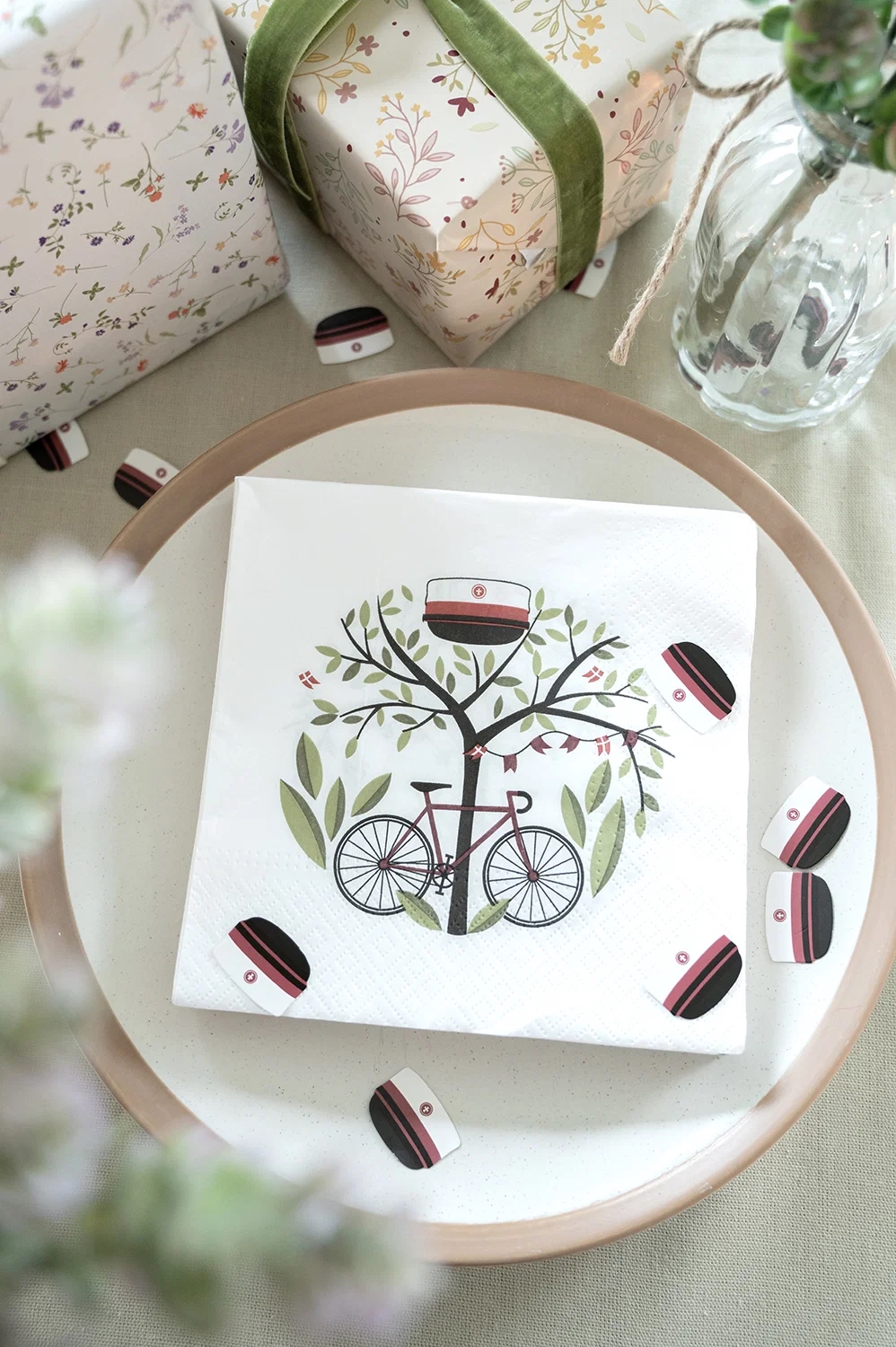 🎓 Studenterserviet med cykel og studenterhue – Perfekt til studenterfest