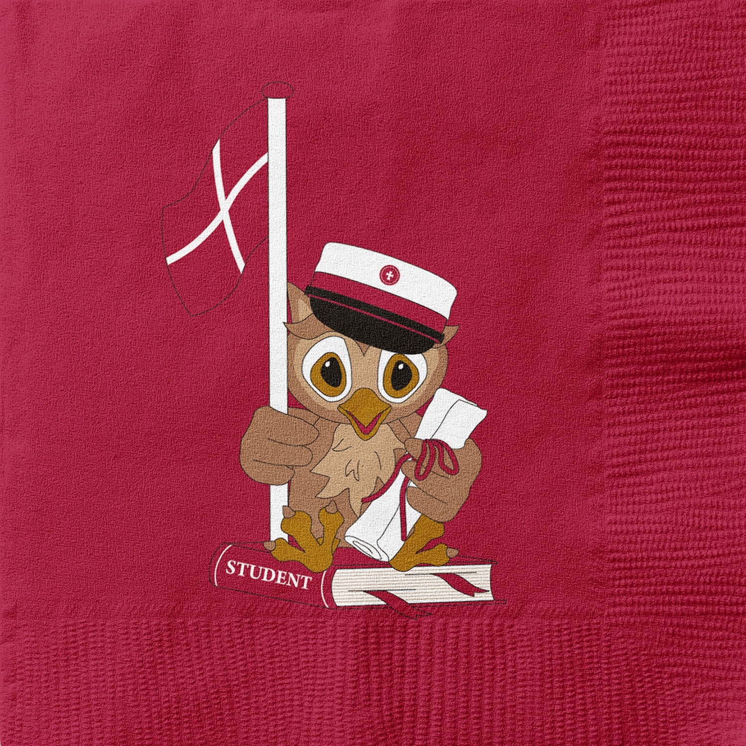 Servietter Student Ugle rød 33cm x 33cm, 20 stk. studenterfest