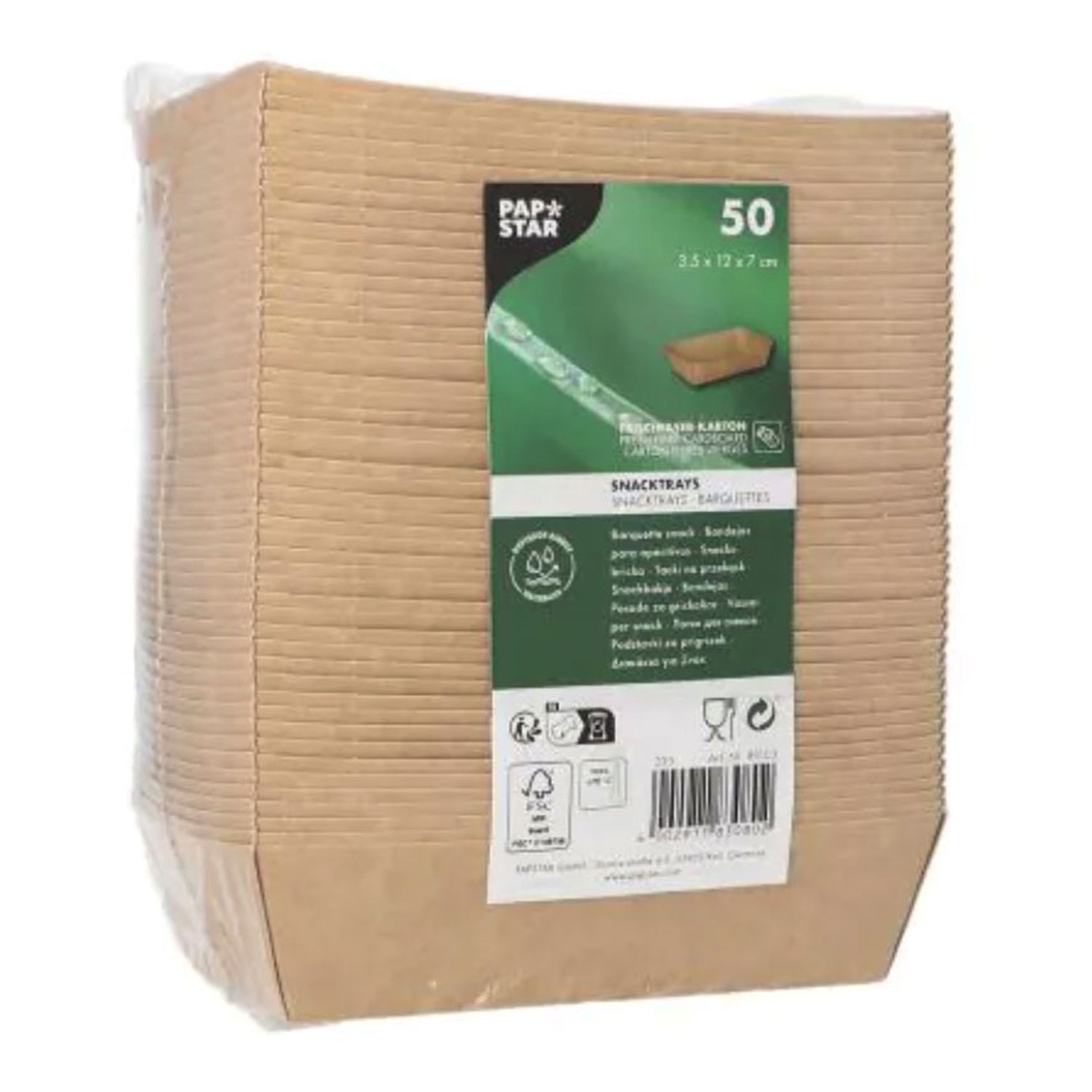 Snack bakke brun/natur, 50 stk. engangsserviceSnack bakke brun/natur, 50 stk. borddaekning