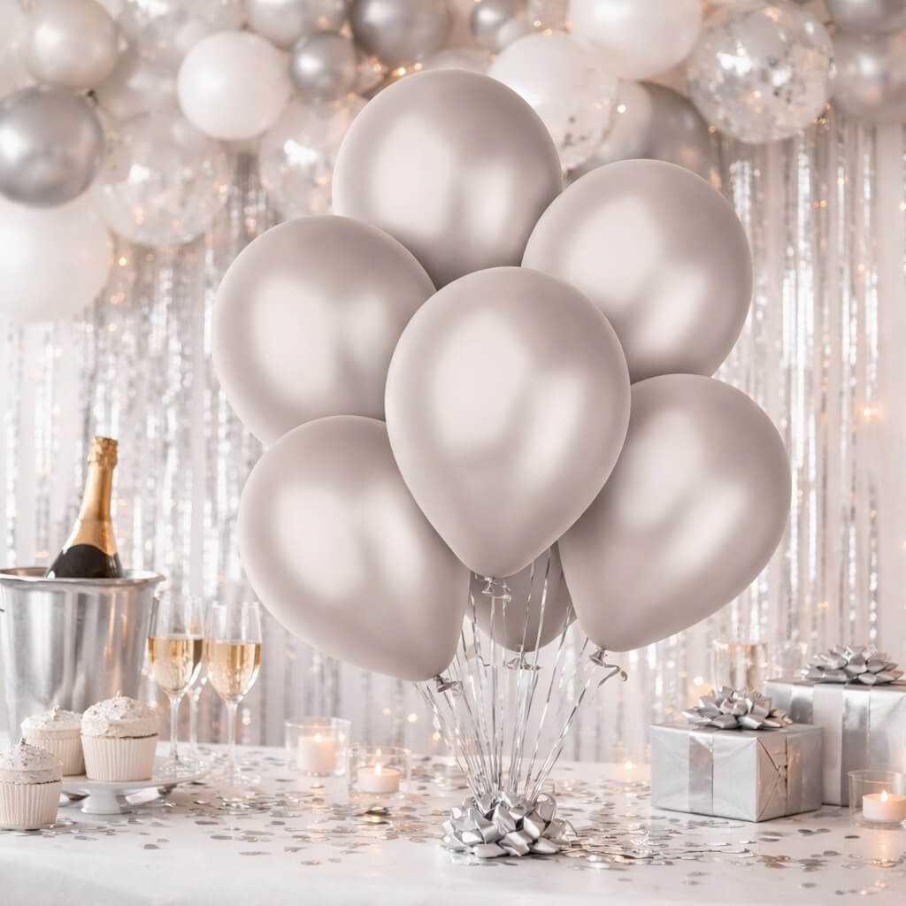 Bestil dine sølv metallic balloner til fest online i dag og gør din fest og dekoration komplet.