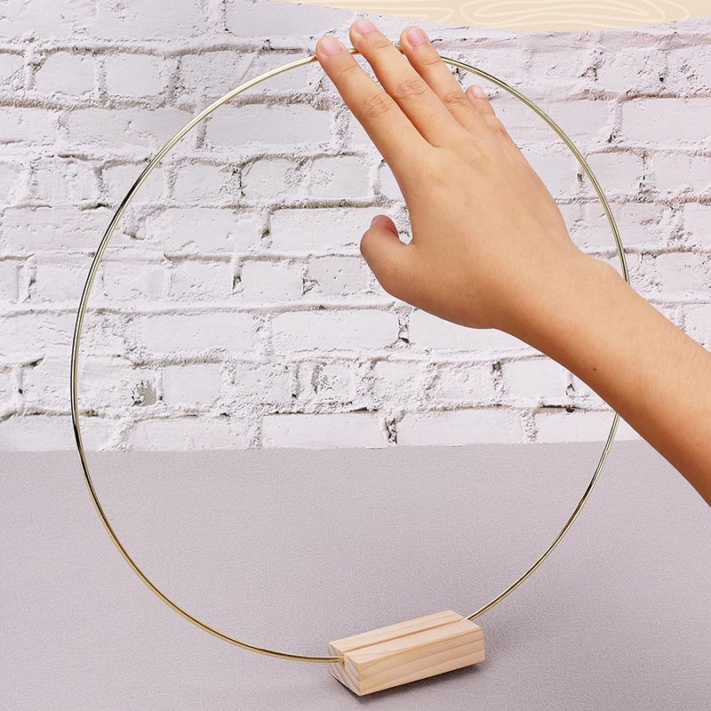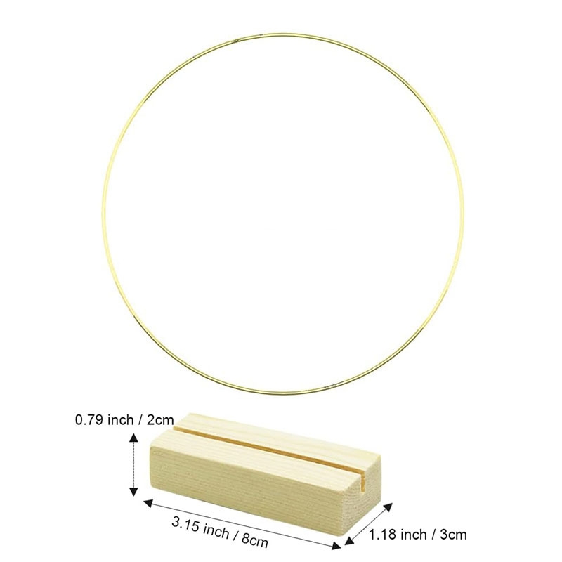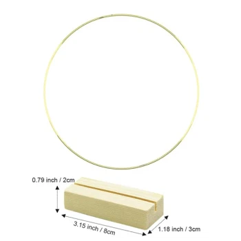 Skab smukke og personlige dekorationer med denne elegante metalring i stativ med træfod. Ringen er perfekt til dig, der elsker DIY, hobbyprojekter og stilfuld pynt til hjemmet eller festlige begivenheder.