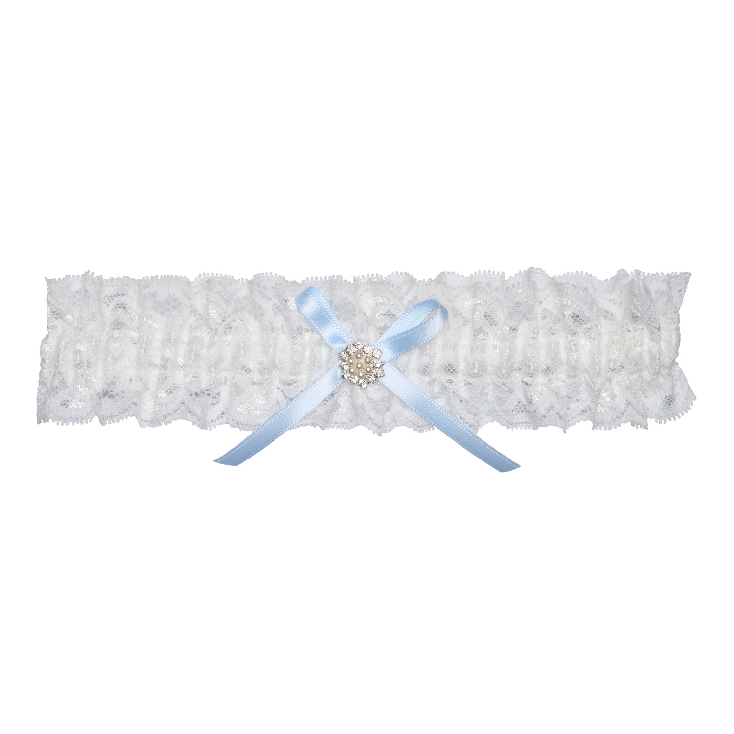Strømpebånd blå sløjfe og perleblomst bred bryllupstradition