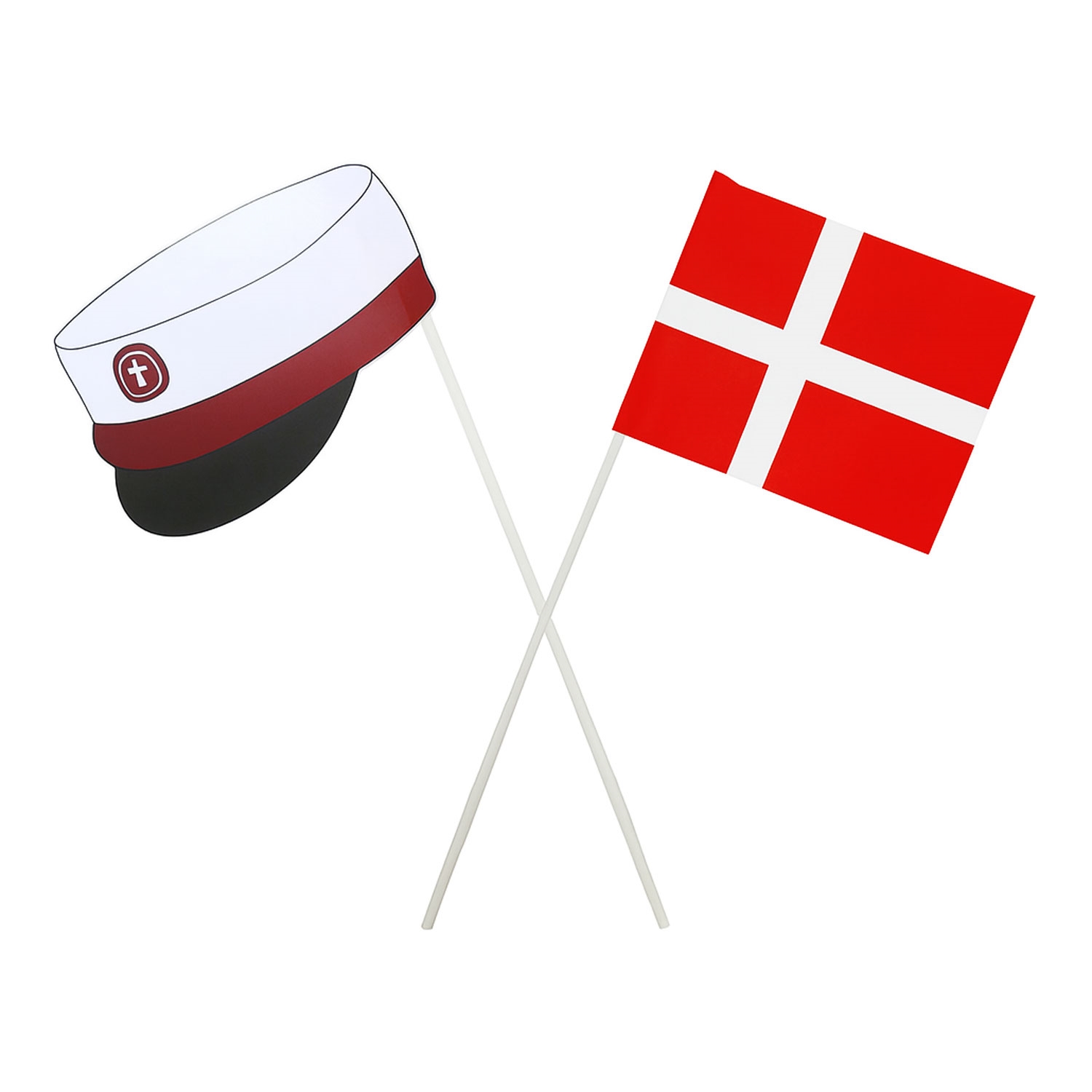 Skal der kippes med flaget for en rød student, så får du rig mulighed for det med disse 10 flag. Fem af der med en rød studenterhue, og de andre fem er med dannebrogsflaget. Så kan der rigtig flages.
