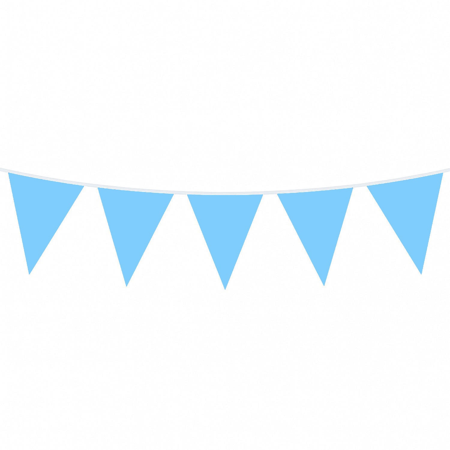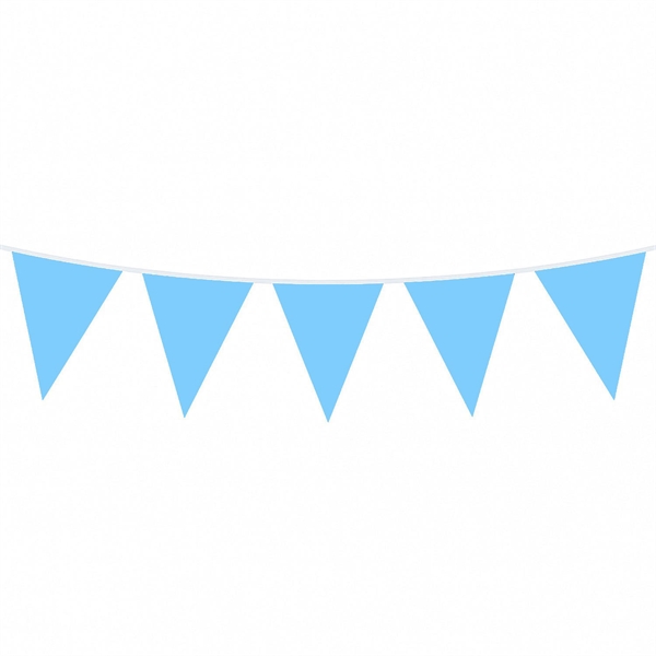 Denne guirlande med lyseblå vimpler vil med det samme skabe feststemning til babyshower, barnedåb, konfirmation eller fødselsdage. Med en længde på 10 m og en højde på 29 cm skal dine gæster nok få øje på den festlige guirlande.
