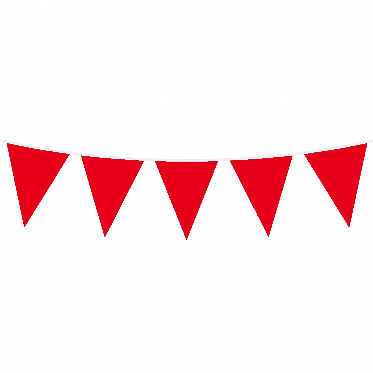 Festlig vimpel med røde flag. Der er i alt 15 flag på snoren. Flagvimplen kan bruges til barnedåb, babyshower, fødselsdag, studenterfest og andre festlige lejligheder. Vimplen er perfekt dekoration til festlokalet, festteltet eller haven og kan fint kombineres med honeycombs, balloner og flag.